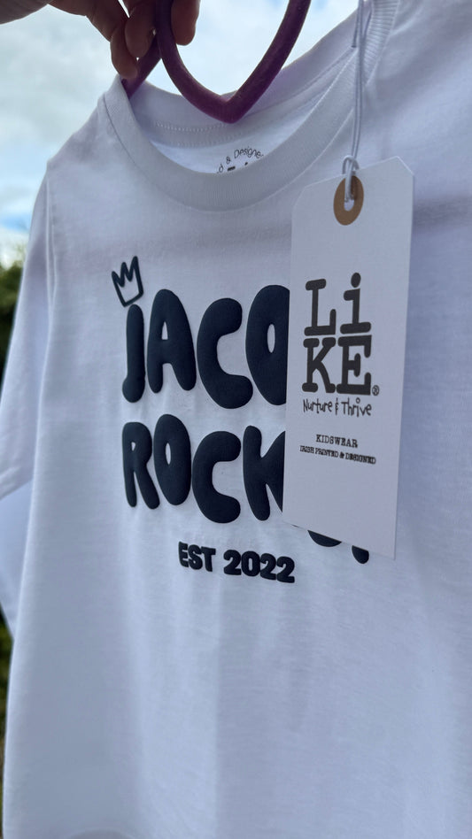 'KIDS ROCK' Organic Cotton Custom Puff Print (age 7-8 In Stock)